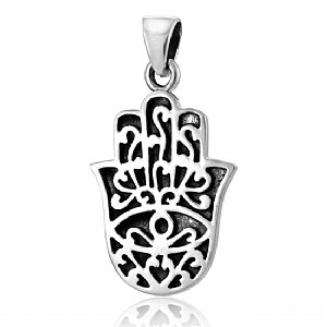Sterling silver Hamsa Pendant with elegant detailed filigree. 23mm H x 17m W (.90 x .60 inch)